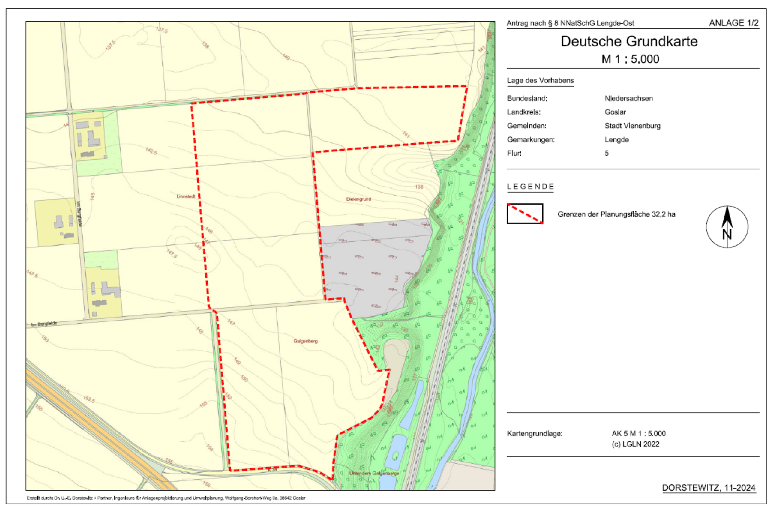 Die Vorhabenträgerin plant die Erweiterung einer Kiessandlagerstätte im Trockenabbau, östlich des Ortsteils Lengde der Stadt Goslar im Landkreis Goslar. Im Regionalen Raumordnungsprogramm für den Großraum Braunschweig 2008 ist die Fläche als Vorbehaltsgebiet Rohstoffgewinnung Kiessand festgelegt. Die Fläche liegt südöstlich der Ortslage Lengde, zwischen der Bundesautobahn A 36 und der Oker.