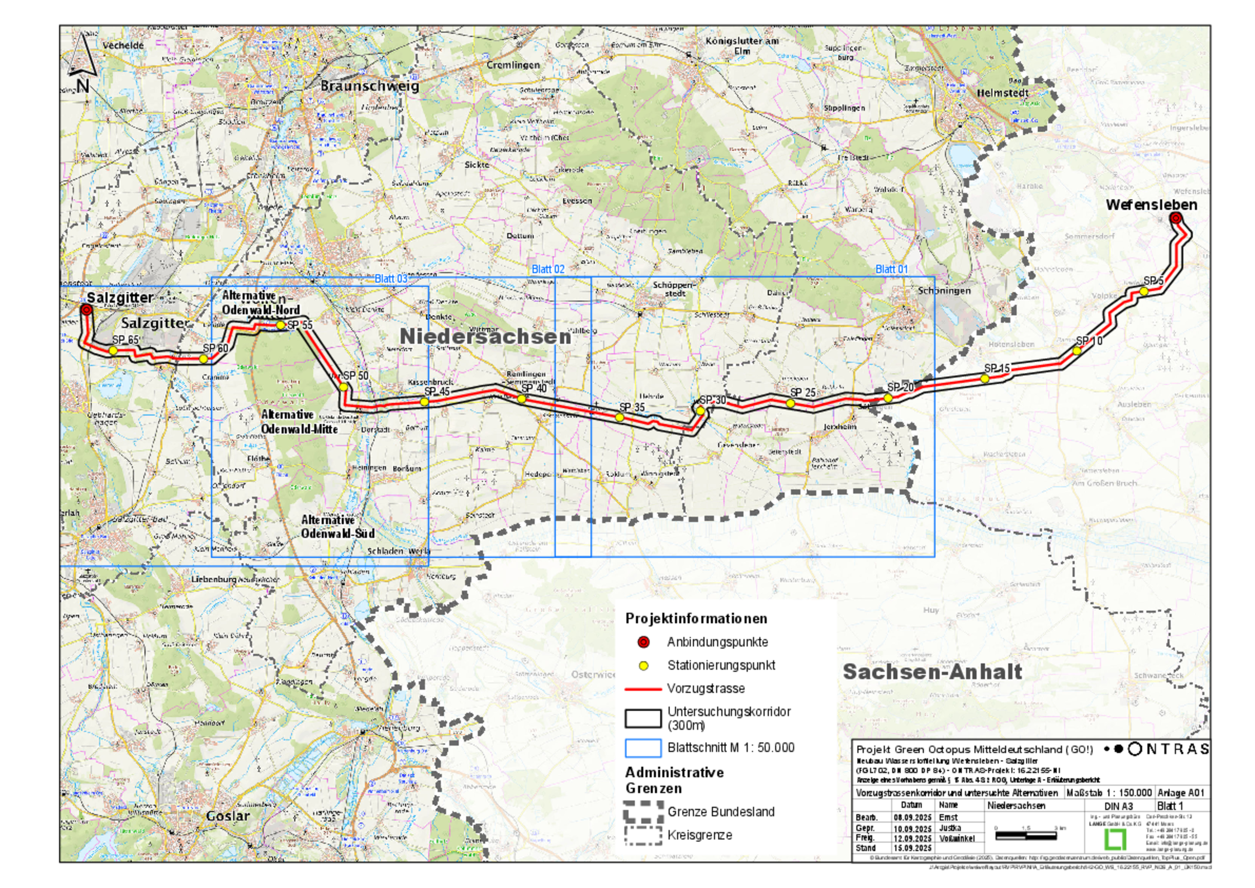 Der Fernleitungsnetzbetreiber (Gasnetz) ONTRAS Gastransport GmbH, Leipzig, - im Folgenden Vorhabenträgerin oder ONTRAS genannt – plant den Aufbau seines Wasserstoff-Startnetzes in Ostdeutschland bis 2032. Als Bestandteil dessen wird der Neubau einer Gastransportleitung (Projekt-Nr. 16.22127-ST und 16.22155-NI) für den Wasserstofftransport ausgehend von Wefensleben in Sachsen-Anhalt bis nach Salzgitter geplant. Die Prüfung der Erforderlichkeit einer Raumverträglichkeitsprüfung gemäß § 15 Raumordnungsgesetz des Bundes (ROG) i. V. m. § 1 Raumordnungsverordnung (RoV) und § 9 Nds. Raumordnungsgesetz (NROG) wurde am 05.12.2025 abgeschlossen. Der von der Vorhabenträgerin eingereichten Anzeige auf Verzicht auf eine formelle Raumverträglichkeitsprüfung (gemäß § 15 Abs. 4 Satz 2 ROG) konnte für den niedersächsischen Leitungsabschnitt durch den Regionalverband stattgegeben werden, mit folgendem Ergebnis: